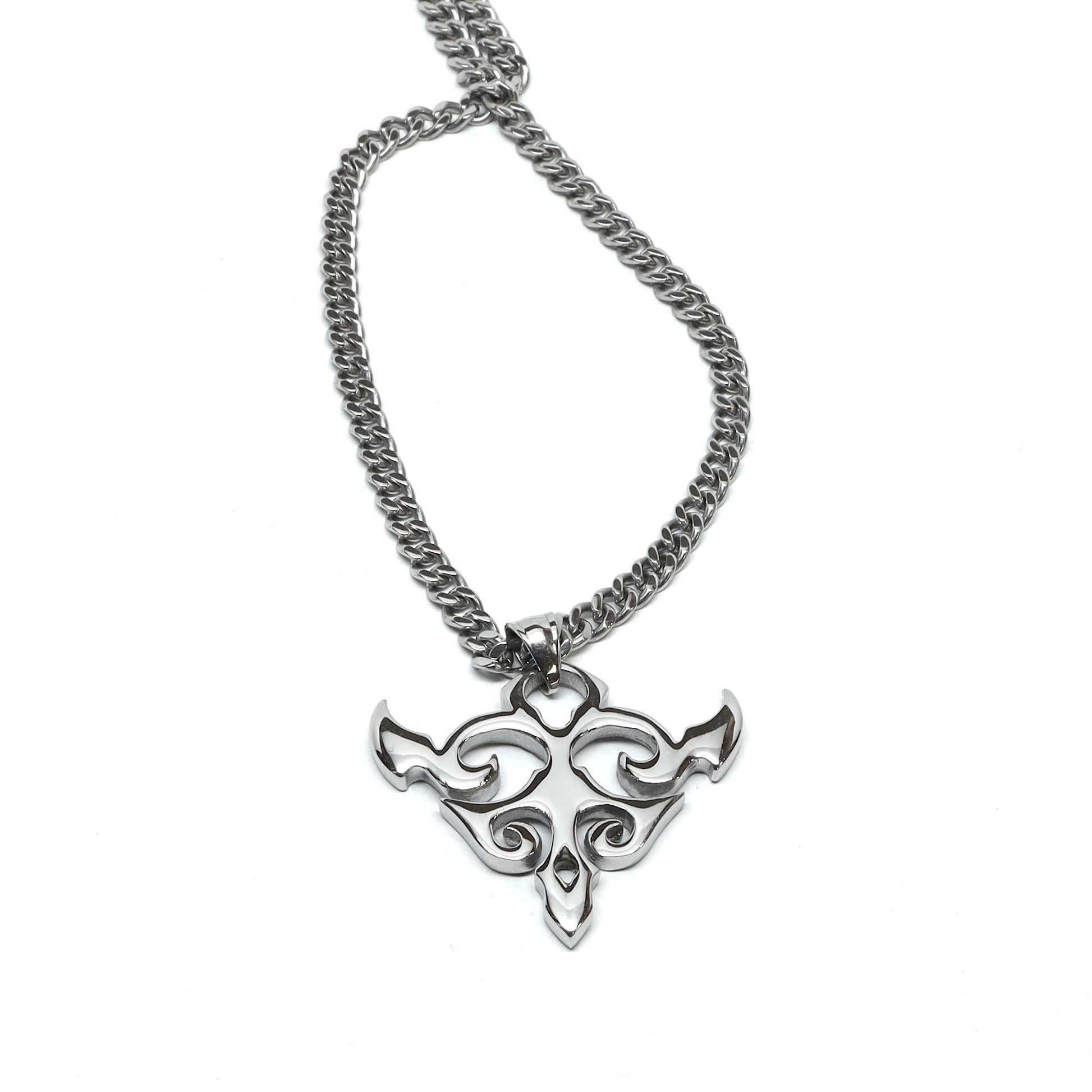 Crafted from high-quality, tarnish-resistant stainless steel, this necklace features a swirling, yet sharp, gothic cross design. The intricate cutout detailing creates an eye-catching silhouette that fits any bold style.