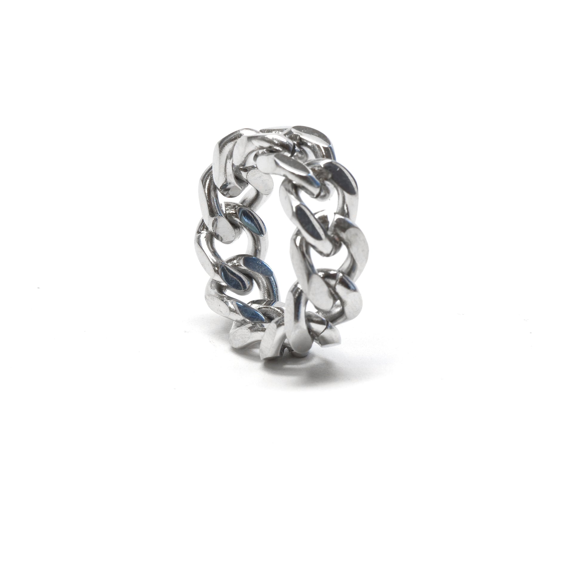 Stainless Steel Polished Ring. Crafted from high-quality, tarnish-resistant stainless steel, this unisex ring features gorgeous facets that are cut on the outside on the chain links. It give the links more character and adds a shining gleam on each link connection.