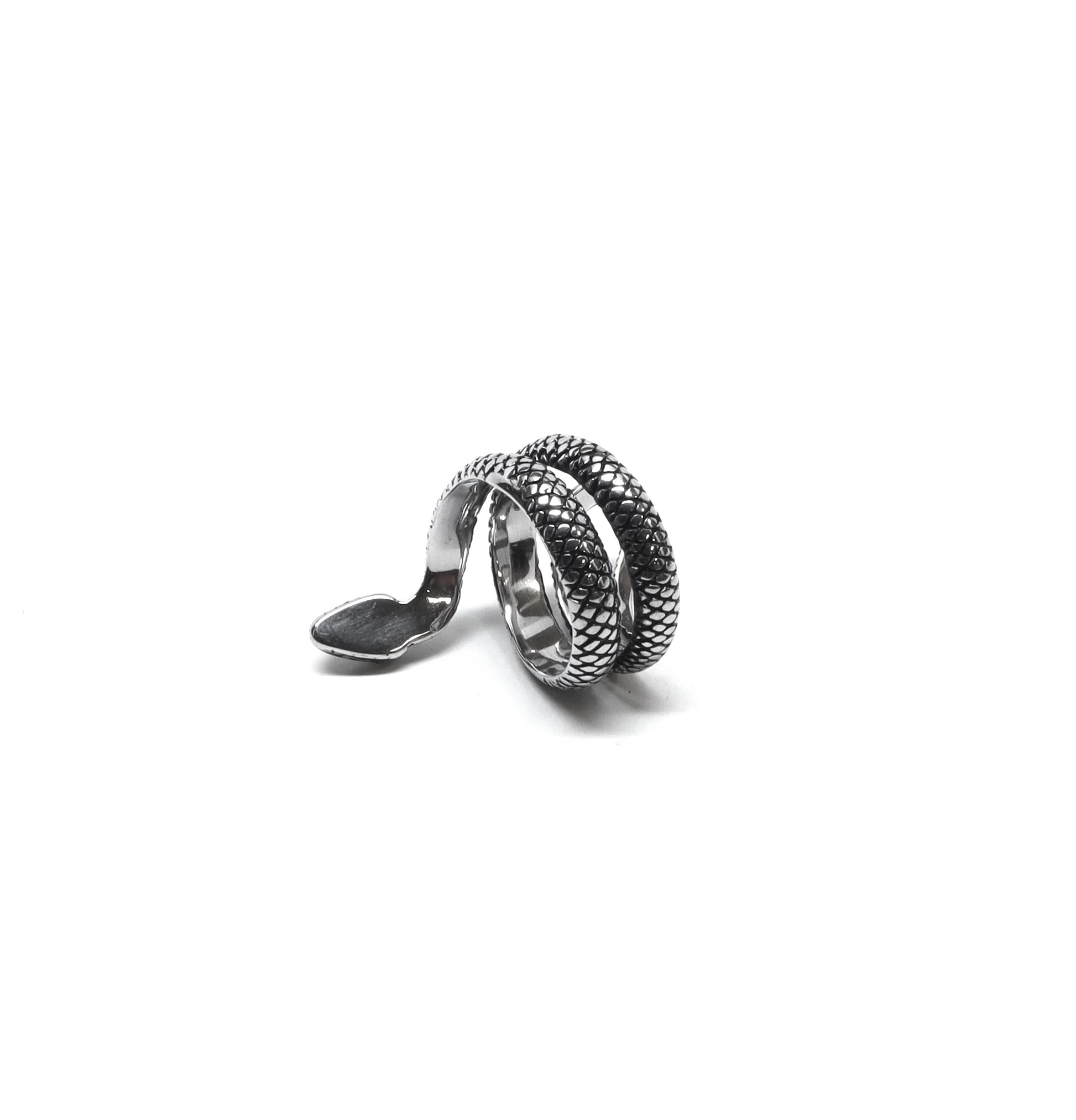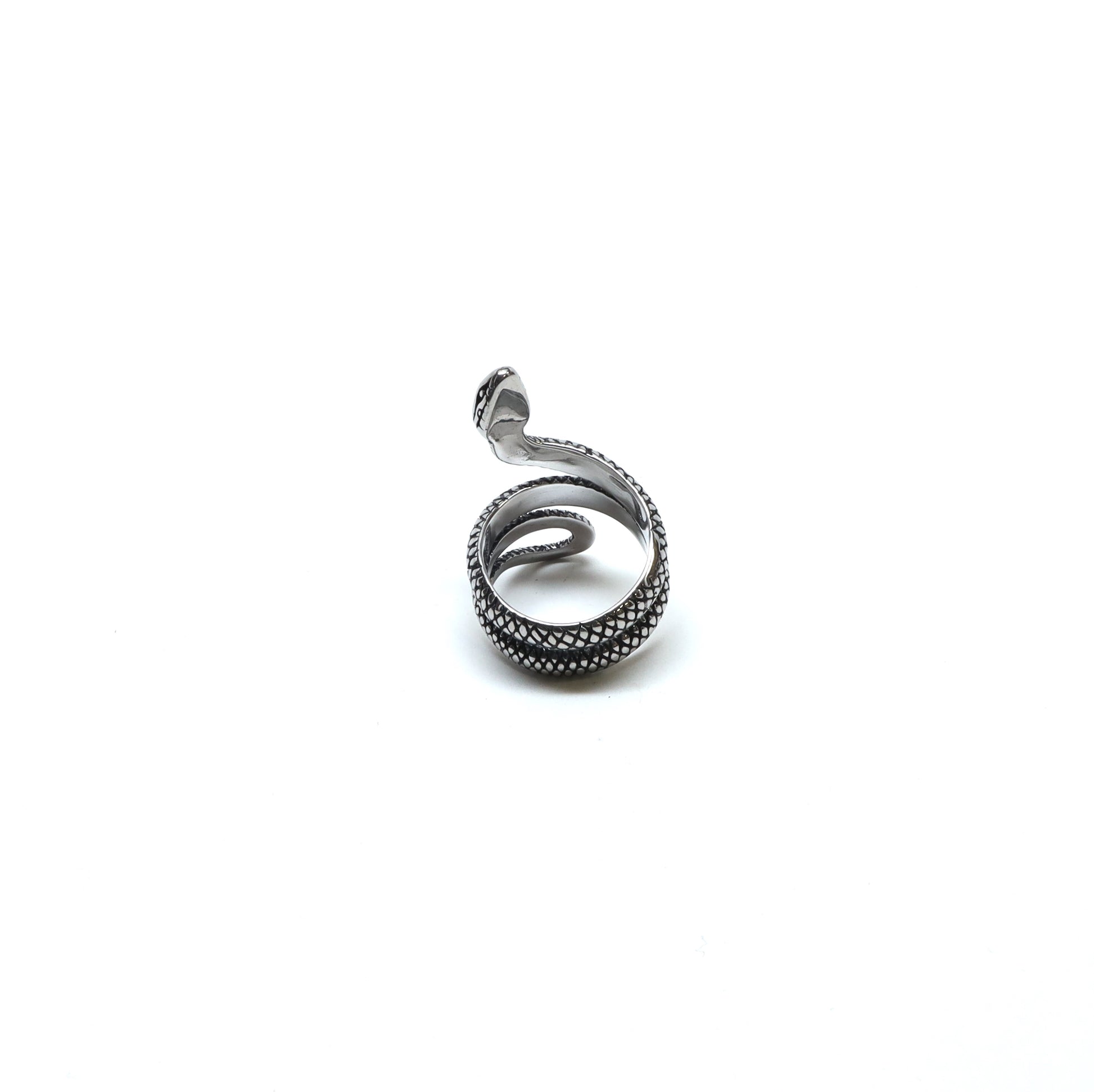 Crafted from high-quality, tarnish-resistant stainless steel, this ring embodies a life-like snake design that completely wraps around the finger. Designed with vividly engraved scales, its striking wrap design creates the illusion of a snake poised in motion that blends with the finger.